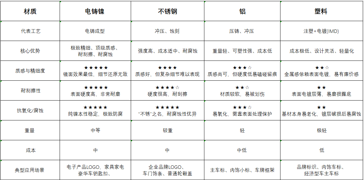 電鑄鎳工藝是制造高端、精致車標的代表性技術,尤其適合對細節、質感和耐久性有極高要求的部位。